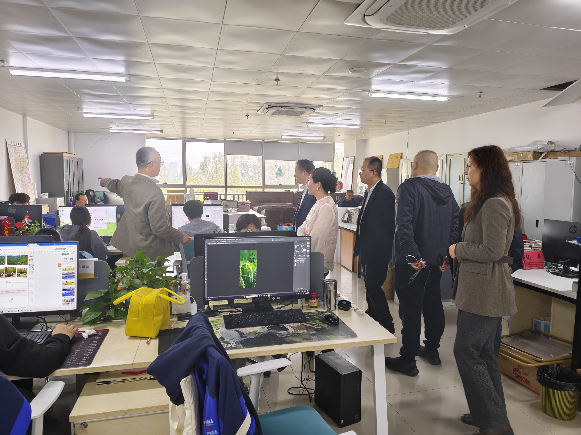 在中心领导陪同下,周总一行先后参观了中心的数据标注部、品牌宣传部、电商客服部职场,实地观摩了残疾人员工的工作场景与成果。参观过程中,残疾员工在数据标注、电商服务等岗位上专注工作的场景,给来访嘉宾留下了深刻印象。